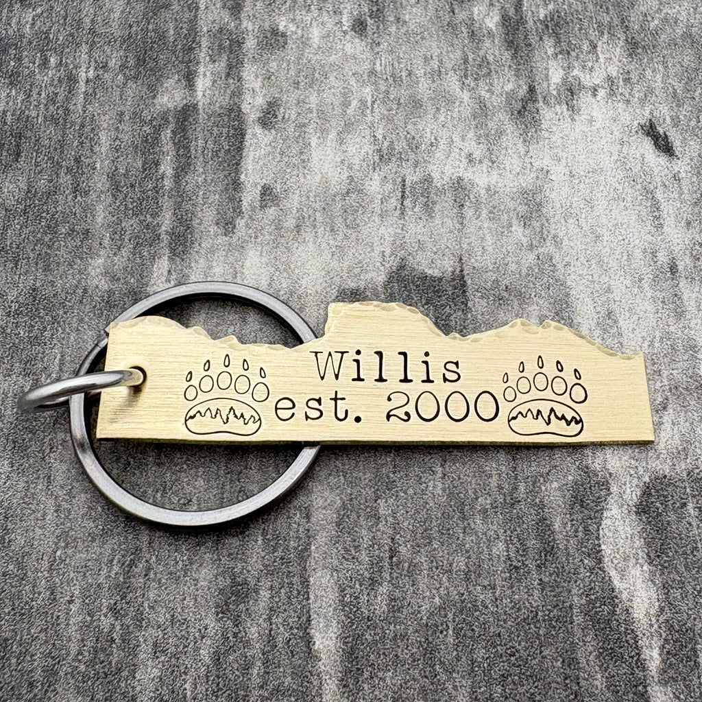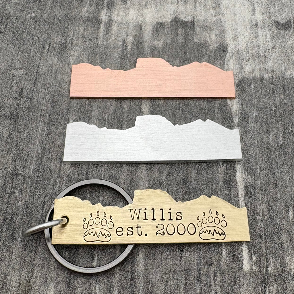 - 2" x 1/2" hand cut Chief Mountain with textured edges and brushed finish